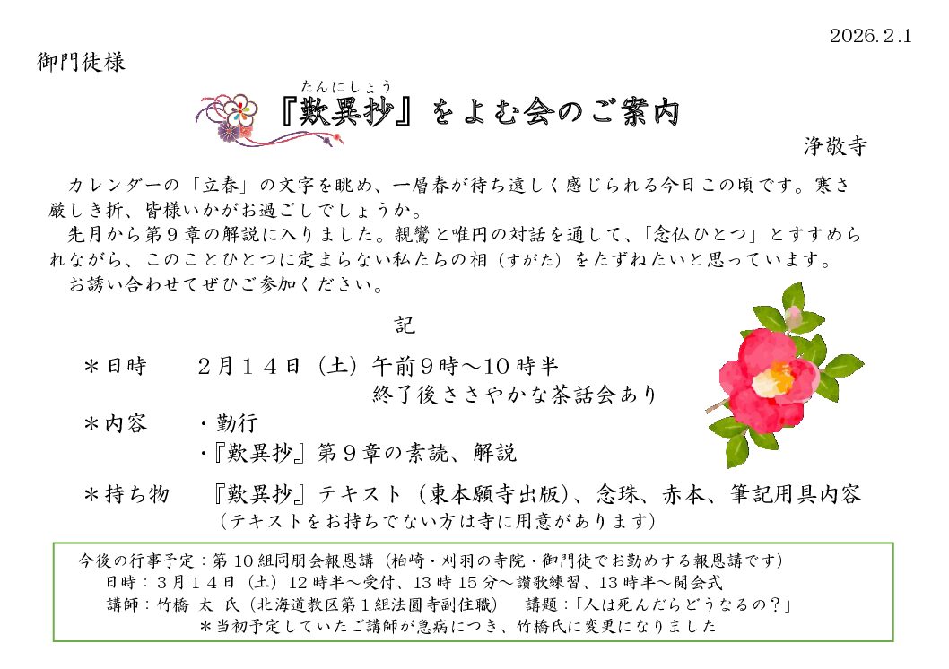 出来る限りの解説もいたしますが、皆さんと一緒に声に出して読み、『歎異抄』の言葉の響きを味わっていきたいと思っています。
